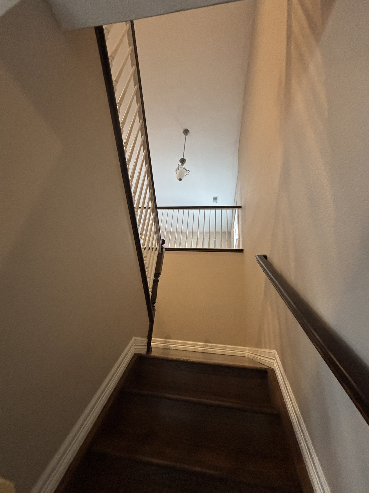 - Minwax Dark Walnut stain โ Chosen for its rich, deep tone that modernizes outdated orange/red wood while still highlighting the natural grain of the staircase. Its reliable penetration and consistent color make it ideal for high-visibility architectural features like railings and newel posts.