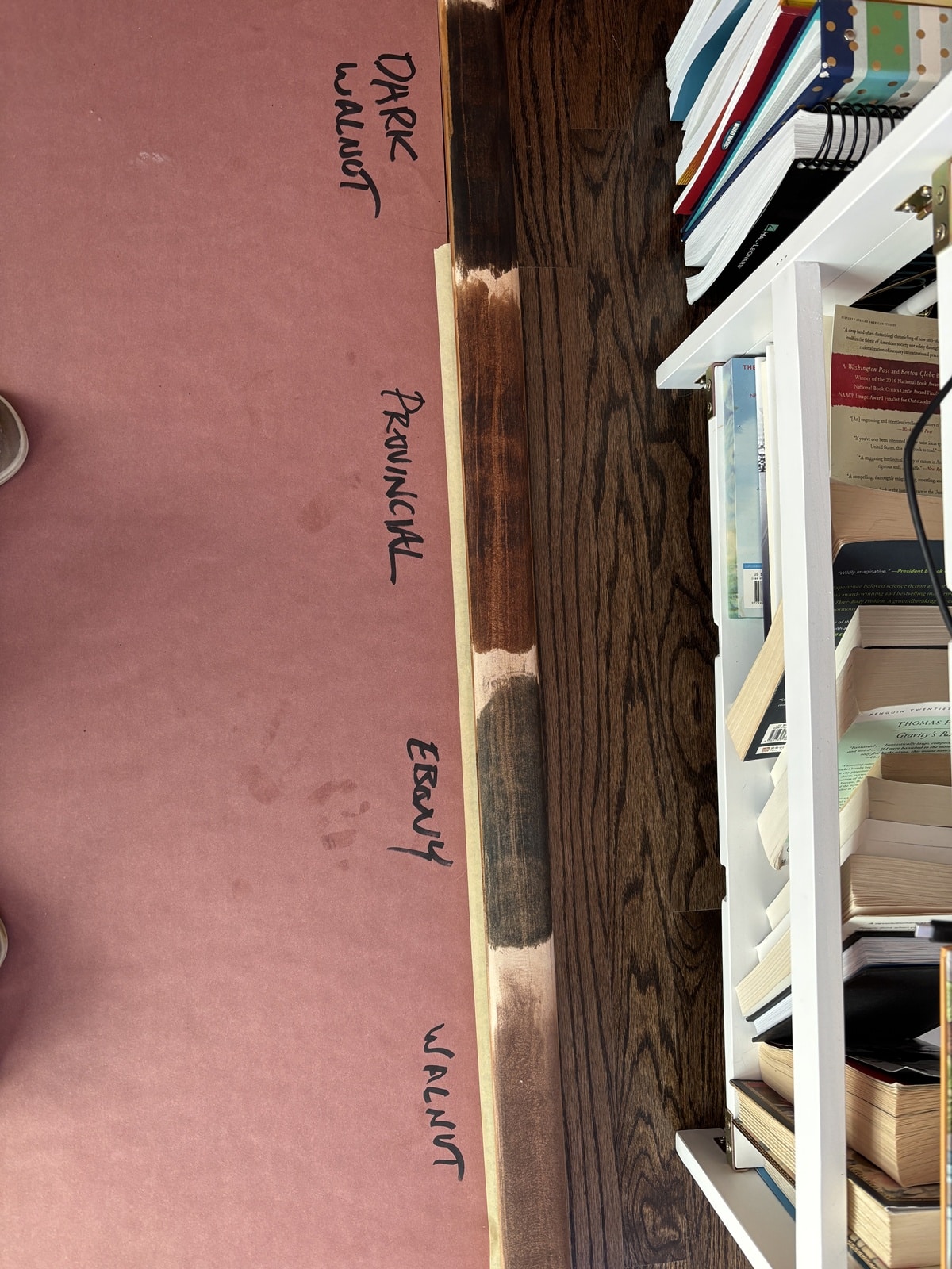 Preparation was extensive. We carefully masked and protected surrounding areas with rolls of plastic and masking paper to contain dust and overspray. For the staircase, we sanded through the old lacquer and stain to bring the railings down to bare wood. This labor-intensive step ensured proper absorption of the new, deeper stain color and a flawless finish.