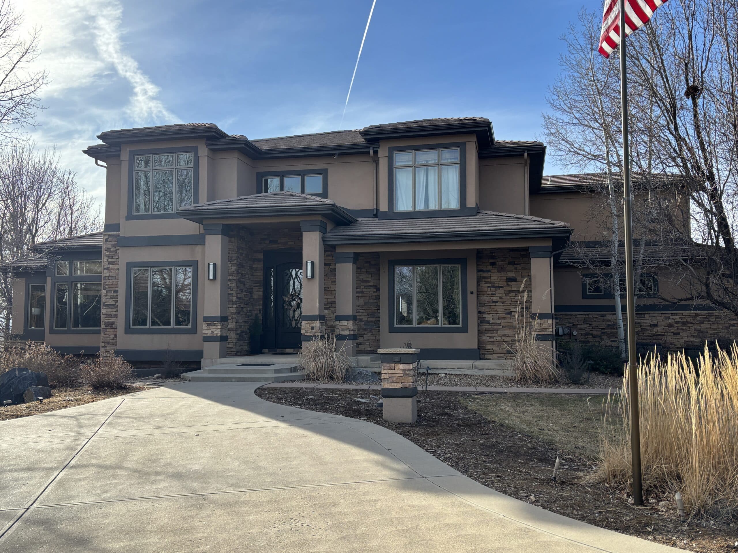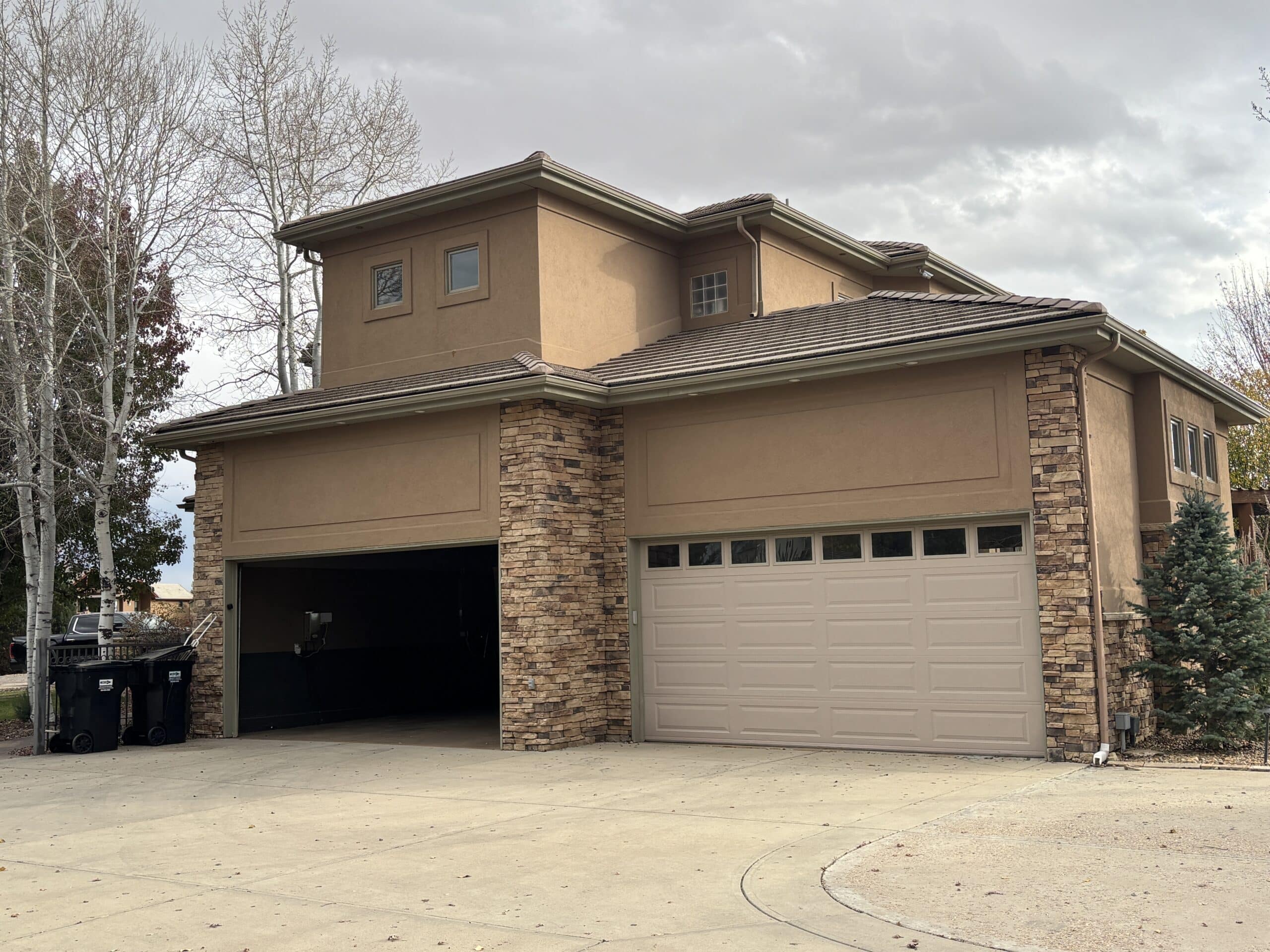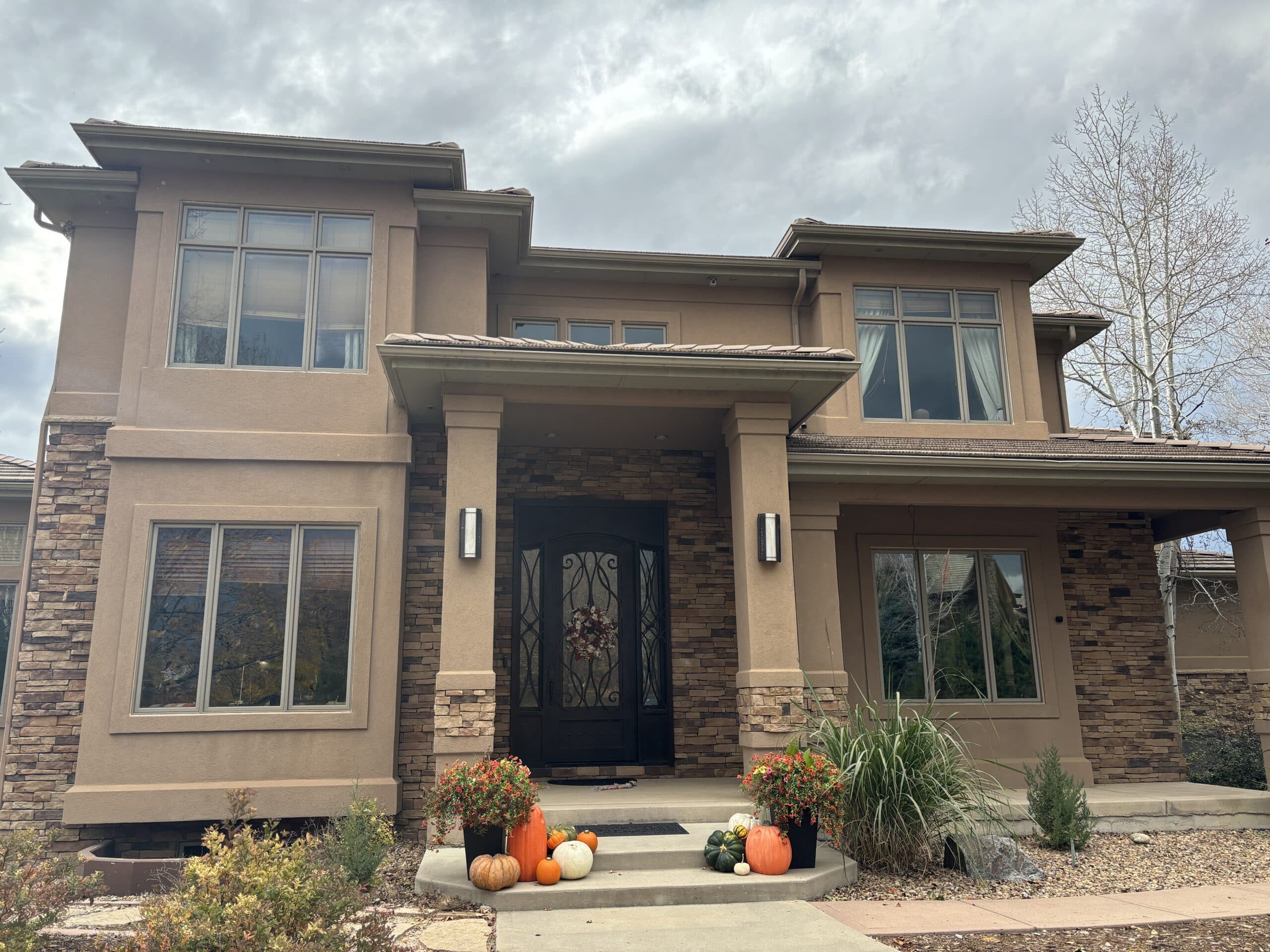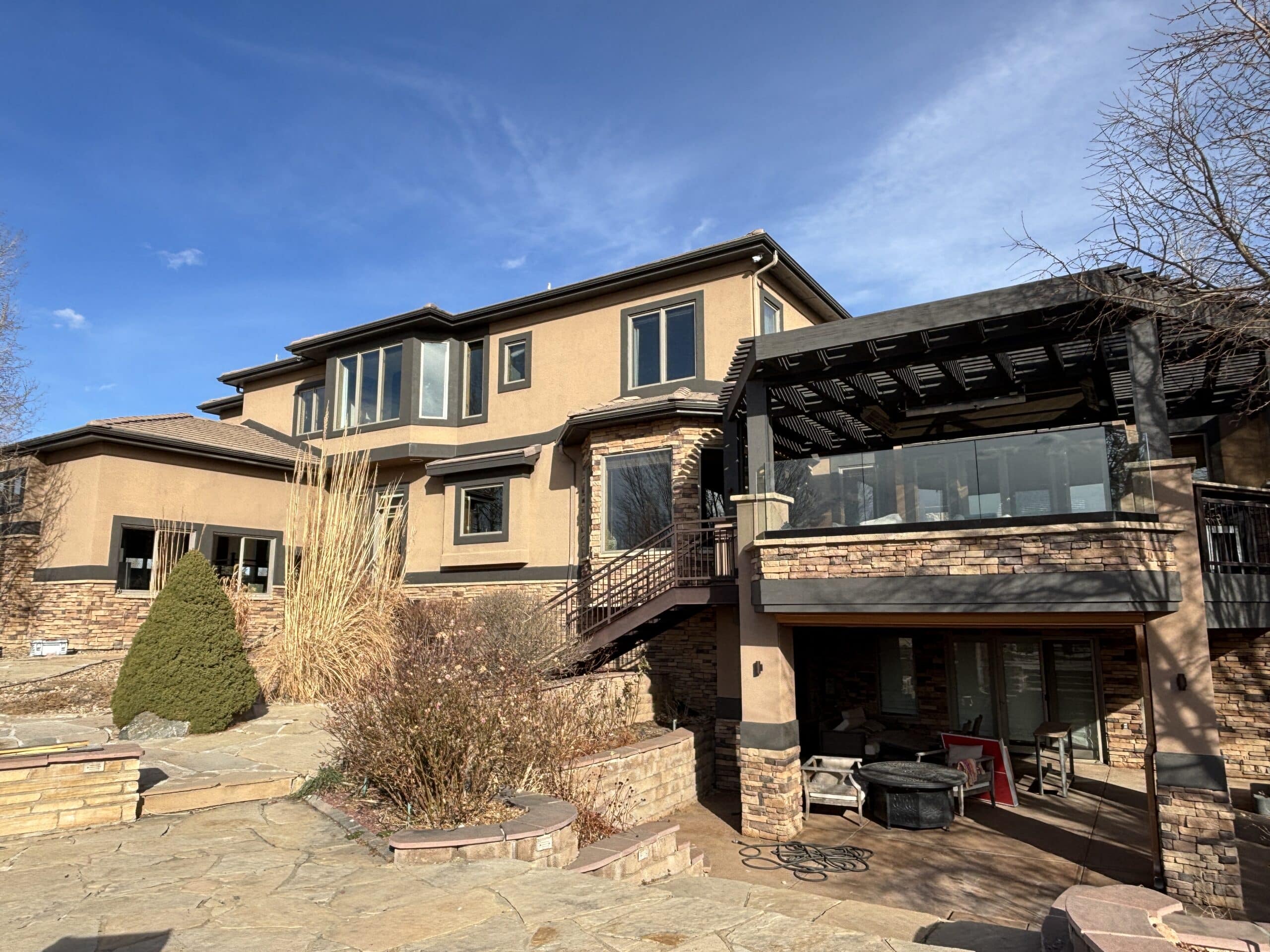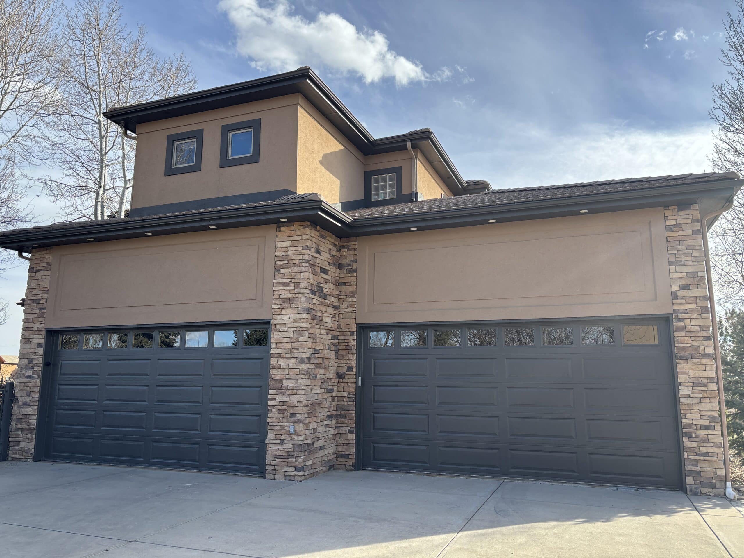 This stucco house painting project in Longmont, CO, focused on updating the exterior while adding contrast and cleaning up problem areas around the home.