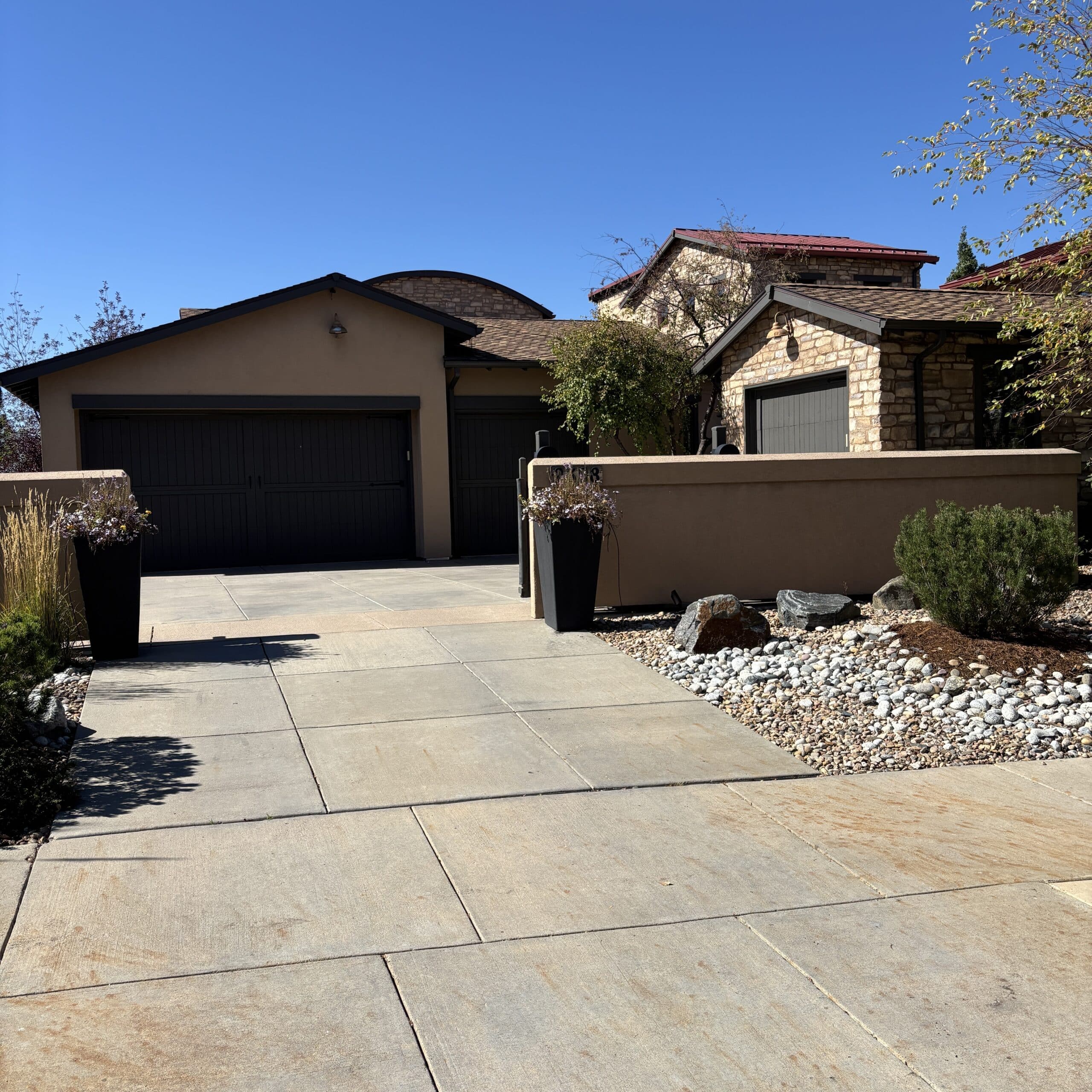 This stucco painting project was completed on a custom home in the Vista Ridge neighborhood of Erie and took just under one week from start to finish. The scope focused on repairing cracked exterior stucco, sealing the surface, and updating the homeโs color to a more modern look.